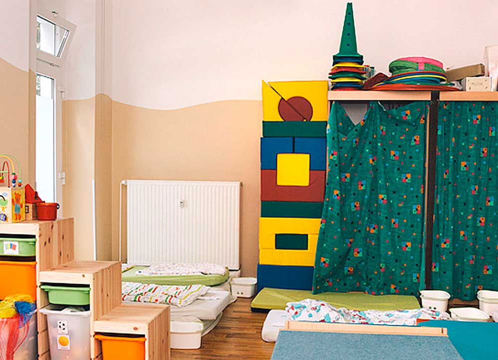 In der Kita werden 18 Kinder im Alter von einem Jahr bis zum Schuleintritt altersübergreifend betreut. In der Einrichtung stehen den Kindern drei Funktionsräume zur Verfügung. Sie sind offen gestaltet und die Kinder wählen
